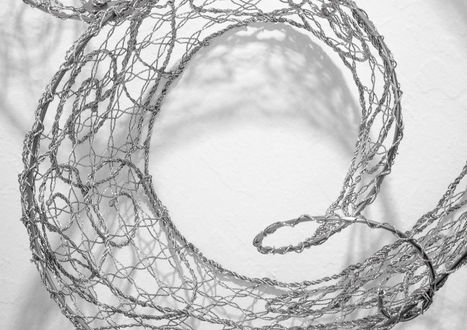 Barbara M. Berk’s sculpture embodies the interplay of metal with traditional fiber technologies and structures. Drawing on the sewing she loved as a girl and the metalsmithing skills she learned as an adult, she uses 16th century stitches to make bobbin lace by hand. She then curves, loops, twists, interweaves, layers, sews, embroiders, filigrees, welds and polishes her flat stainless steel or phosphor bronze fabric into 3-dimensional forms, that become wall-mounted, ceiling- suspended and pedestal-supported sculptures.